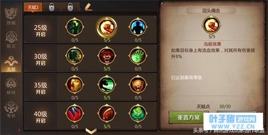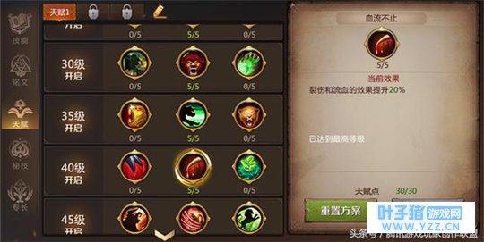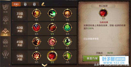 守护者野性天赋可以大幅提高熊熊流血与裂伤的伤害。 天赋-血流不止:血流不止天赋可以提升裂伤与流血效果,点满该天赋,最多能提升20%的裂伤与流血效果。