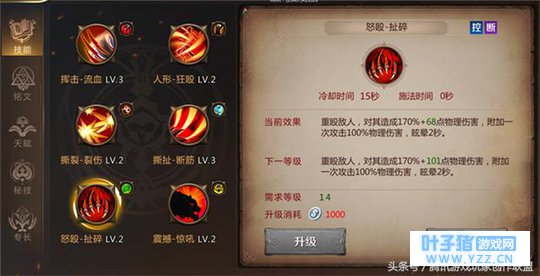 怒殴-扯碎:这个技能不仅是强力的攻击技能,还能眩晕目标2秒!
