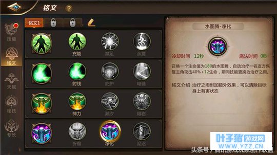 水图腾-净化可以让治疗之雨附加额外效果:清楚目标身上的有害状态。当我们在于善于诅咒的咒术师PK时,可以用治疗之雨清除其为我们施加的所有诅咒。这个技能不仅能对付咒术师,也能对付其他会加DEBUFF的职业,比如用来对付毒药系的刺客和喜欢射毒箭的游侠。当我们满身DEBUFF,血量狂降之时,一个治疗之雨,就能让我们重新振作起来。