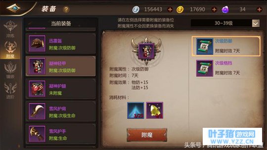 还有一个可以提升玩家战力的途径就是“装备附魔”,虽然每次通过装备附魔提升的属性及战力只能维持七天,但是在这七天里玩家的属性还是能够得到不小的提升。装备附魔所用的材料,玩家很容易就能够获得,例如附魔粉尘玩家可以通过分解多余的装备获得,而像兰陵石、龙眼石的获取方式有很多如钓鱼、公会守卫战等。玩家只要参加相应的活动就有机会获得。
