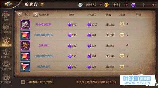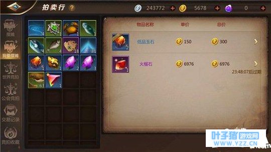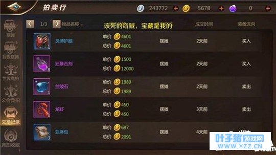 左侧【交易记录】可以看到游戏的拍卖行记录。