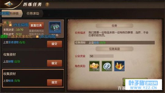 在强调下历练里面收集材料的任务,不要任性,不要自力更生非要自己买,大家都很乐意帮助你的。一般情况下话还没喊完,东西就已经被抢着捐完了,你完成任务,他拿帮会贡献,互惠互利可还行?