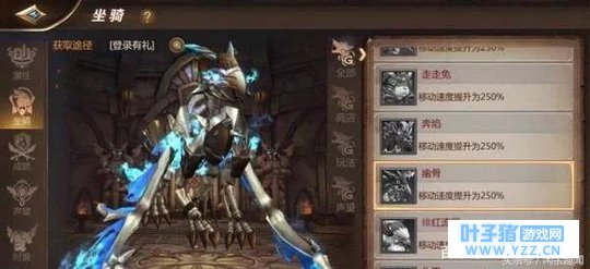 1、首充奖励 首充任意金额赠送坐骑——走走兔,游戏中最低充值金额为6元,对于非RMB玩家,6元应该还是在承受范围之内的,6块钱获得一个蠢萌的兔子也是可以的。而在这次的测试中,所有坐骑的属性均为提升250%移速,因此实在不想充钱的话,骑乘一开始送的某色战熊也是可以满足赶路需求的。坐骑共分为两大类:陆地骑行类和空中飞行类,其中飞马的飞行特效绝对位于榜首,不过飞马需要4980符石购买,平民就不用考虑了,依靠后面所要介绍的登陆有礼获得幽骨就好。