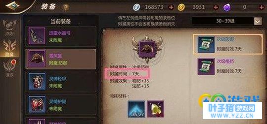 装备附魔玩法攻略: 装备附魔可以通过游戏右下角【工坊】进入,左边切换到【附魔】。 附魔材料拥有不同品质的,附魔材料通过公会守卫战、声望任务、钓鱼、公会历练、战场、竞技场积分奖励等方式可以获得。每个附魔时效都为7天,点击后附魔效果是在相应的装备位置上,附魔越好属性消耗的材料也会越多,相应的附魔材料也可以点击之后可以查看获得方式。