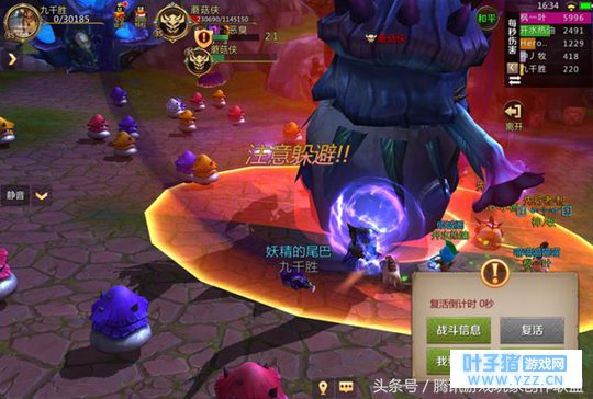 战斗中(精英难度),蘑菇侠会随机点名一位玩家对其释放“爆裂孢子”,10秒后该玩家会对其他玩家造成相当于自身当前生命值的伤害。 就如血量值50000的T被点名,最后满血等待爆裂孢子效果出现的话,那么队伍于其他玩家就会受到50000点伤害。所以这个时候,被点名的玩家需要主动去踩两三个蓝紫色蘑菇,将自身血量降低,奶妈这个时候也别傻乎乎的给被点名的玩家回复生命,等到“爆裂孢子”效果过去之后,再第一时间回复被点名玩家的血量。