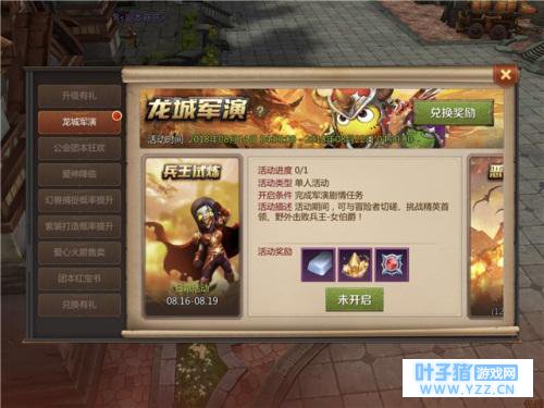 兵王试炼赢好礼,团本酣战嗨个够! 兵王节活动从8月14日正式开启,活动将持续一周,参与活动的四个阶段均能获得专属代币,代币可以兑换各类成长物资,以及节日限定的坐骑(披甲战马)和挂件(红色军旗云霞飞火)。目前兵王节活动已经正式进入第二阶段——“兵王试炼”,完成军演剧情任务即可参与其中,在活动期间与冒险者切磋、挑战精英首领或野外击败兵王-女伯爵均可获得丰厚的奖励,感兴趣的冒险家们要记得准时参与活动哦!而在接下来两个阶段的兵王节活动中,大家还能与恶龙交战,体验帝国强大的武器,在击退邪恶势力之后尽享无上荣光与圣帝龙城的狂欢盛典,敬请期待!