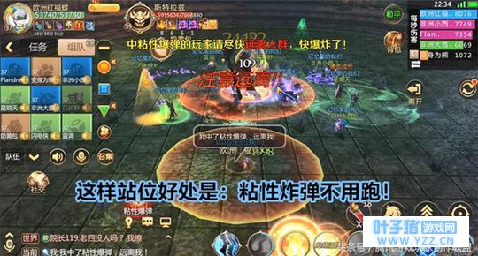 为什么我们推荐如此站位呢?因为BOSS会放粘性炸弹,如果我们按图中站位的话,那中了粘性炸弹的队友就完全不用动,因为周围没有队友会受到炸弹伤害。