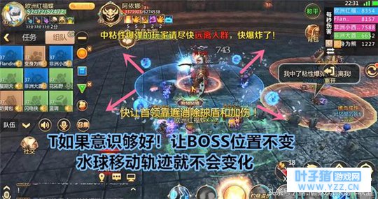 龙男的粘性炸弹:对随机一名玩家释放粘性炸弹,3秒后爆炸,对周围目标造成伤害。 我们就算不打龙男,龙男也会放粘性炸弹,如果他不放这个技能,那么龙女死之前就是站桩输出了。破解此技能方法不难,就是中了炸弹的人走出人群即可。