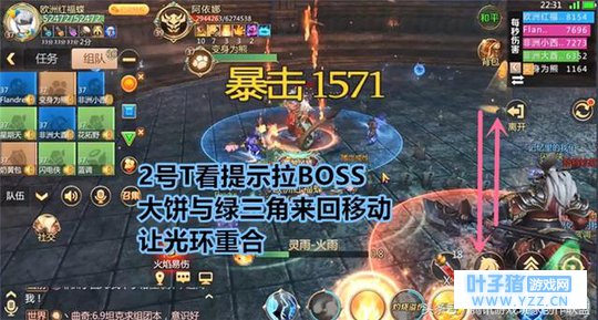 只要第2组中的T根据屏幕提示不断拉着BOSS走位(大饼与绿三角之间走),就可以轻松破解所有与光环相关技能。