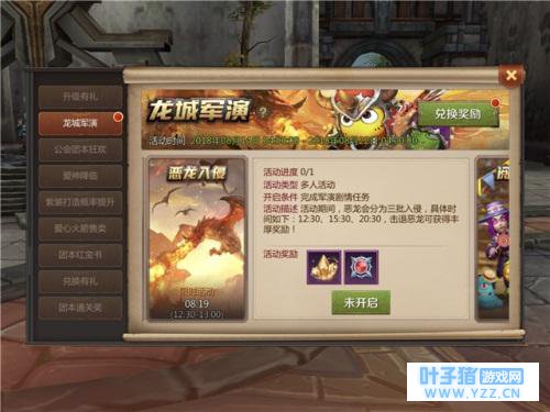 为荣耀和正义而战,歼灭恶龙赢好礼! 自从负伤的神圣巨龙告知大家血红祭祀将派出恶龙进攻圣帝龙城之后,帝国便召集了大陆上的勇士们前来相助,共同守护圣帝龙城的安危。8月19日,当龙城驻军做好万全准备的时候,恶龙们也正式发起了进攻。活动当天,恶龙将分三批入侵龙城,时间分别为12:30、15:30、20:30,各位冒险家的任务则是在世界各地寻找并击杀恶龙军队,击退恶龙即可获得丰厚的奖励,大家要记得准时参与哟!恶龙实力强劲,单枪匹马很难获胜,所以在战斗时会有NPC帝国卫兵前来助阵,并且利用帝国特制的战争工具能够更快地消灭敌人,请大家合理使用。击退恶龙之后,次日18点还会有盛大的龙城游行庆典,参与即可获得荣誉勋章,能够兑换各类成长物资与节日限定坐骑、挂件,想要就要积极去争取咯!