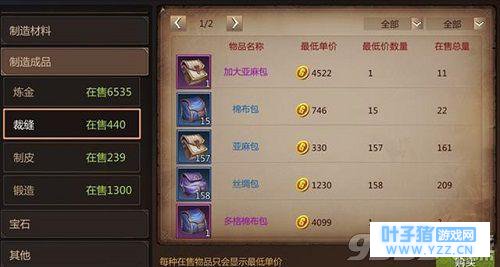 选择了“裁缝”进行学习的玩家就可以直接消耗对应材料生产背包扩容道具,如消耗20个“亚麻布”就能够生产出一个“亚麻包”。