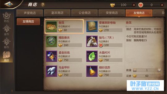 需要注意的是,玩家每天能够获取的友情点最多为1000点,这一千点该如何消费才能花在刀刃上呢? 游戏中的友情商店每天会提供四类道具供玩家选择,分别是鱼饵、要塞刷新卷轴、精致兽夹、生活机能的稀有材料。这四类道具都有各自的用处,很难在优劣上分个高下,玩家可以根据自身的情况进行选择。