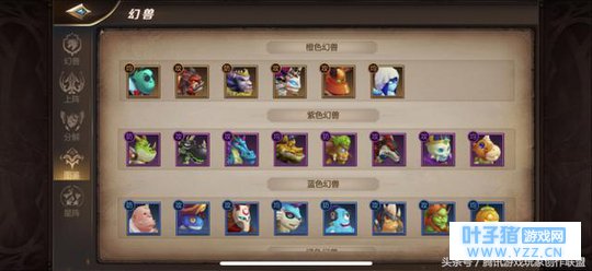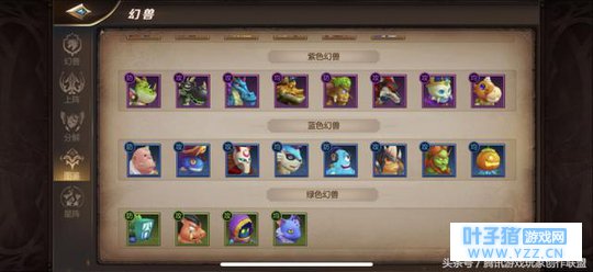 当前版本幻兽有绿色、蓝色、紫色、橙色4种幻兽品质,一共有26只幻兽。由于幻兽本身的基础属性和技能的不同可以分类为防御型幻兽、攻击性幻兽和均衡性幻兽3种类别。每种类型的幻兽提供给玩家的属性和技能也是大不一样。根据我们职业选择的不同,可以随心搭配不同技能的幻兽,让玩家能力更上一层楼。