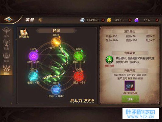 装备进阶也是非常的高,使用时可以解除控制效果,非常强力的属性呀,真的让人感到非常恐怖的存在呀!