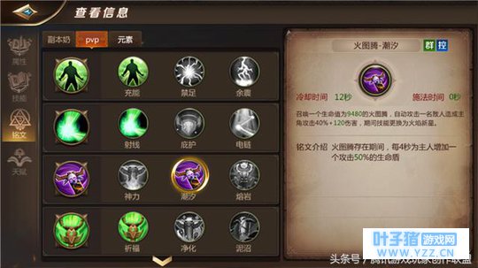 火图腾-潮汐:火图腾存在期间,每4秒为主人增加一个生命盾,这是一个保命技能,效果虽然不是非常强,但是也能稍稍提高自己的生存能力,有时候,胜负也许就是因此差这么一点。