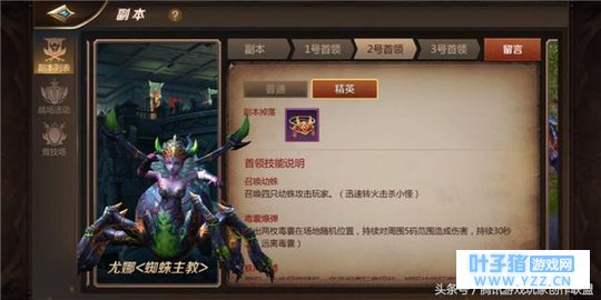 技能难点:蛛网束缚 BOSS会编织一个蛛网随机困住一名玩家,被困住的玩家无法动弹。很多玩家在初次接触该副本的时候,很容易为了多贪点伤害输出,或者战力高点的玩家选择全力输出BOSS,而选择见死不救,这种做法是大错特错的。在队友被困住后我们就要集火打掉蛛网,虽然这样会掉点自己的输出,但如果不救的话就会大幅度拉低整体的输出,容易让BOSS狂暴。