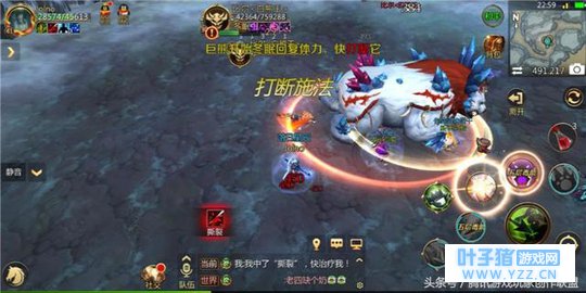 技能难点2:恐怖重击 BOSS在蓄力后随机攻击一名玩家,被攻击的玩家会出现“我中了‘撕裂’,快治疗我”。这时候奶妈只要快速为他回血,将血量抬至90%以上,就能消除该状态。