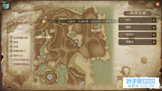 3、大盗贼的宝藏3位置 第三个任务的位置在离巨兽头颅稍远一些的角落,在西林戈壁坐标(973,747)。