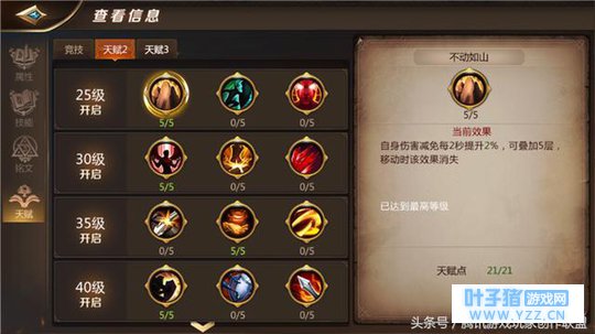 不动如山:不动如山是PVE战士必选天赋,这个天赋最多可以提升战士10%的免伤,是抗BOSS的优秀天赋。