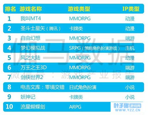 腾讯游戏新品入榜占比过半 更多IP类型增加释放 从发行企业分布来观察,发行商主要集中在腾讯游戏上,上榜新品多达6款,其中仅两款为自研产品。这一方面源于腾讯游戏Q2营收环比出现下降,出于资本市场压力,其首席战略官詹姆斯·米歇尔(James Michelle)提出在7月和8月发布几款高ARPU值的游戏,比如角色扮演游戏和牌类游戏,其中《我叫MT4》与《圣斗士星矢(腾讯)》正是典型代表。另一方面则反映出游戏企业对腾讯游戏发行实力的认可,腾讯能够获取市场上最优质的产品资源。 从新游IP情况观察,榜内新游均有IP ,同时随着热门端游IP的减少,更多类型IP增加释放,比如动漫、小说、主机游戏等,并且游戏企业也提加速了对海外IP的获取。 2018年8月移动游戏新游榜