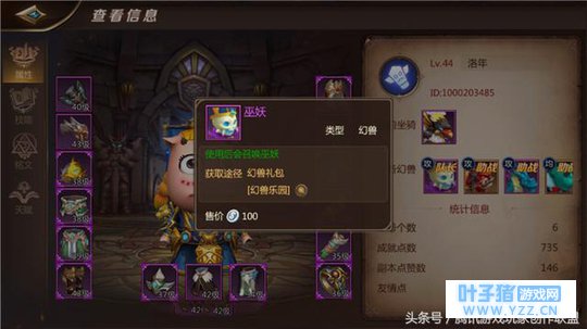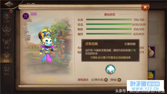 巫妖,一个较为容易获得紫色幻兽!其幻兽技能为灵魂血魄,有5%概率为目标恢复额外的血量,在打很多BOSS时,巫妖的作用完全不弱于 恐怖 魔王,甚至可能更强!因为对付不会召唤小怪的BOSS时,巫妖技能触发后,额外恢复的血量要比 恐怖 魔王多。