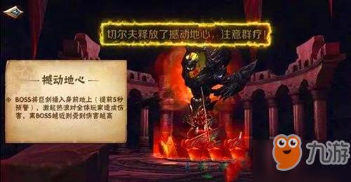 如果分摊人数少于四个人 ,Boss会对全体发动火焰新星 ,还给自己附加升温buff 哦!下次火焰新星伤害会提升20% !注意分摊伤害很关键! 下一个技能是火焰链接 ,除坦克外 的随机玩家会被施加链接debuff ,被链接对象会受到一定比例的boss攻击伤害 。10秒重新施放链接 ,每次只链接一名玩家 ,奶妈注意加血即可。 撼动地心 ,两种范围AOE混搭,切尔夫施展举剑插地的动作 ,玩家有5秒内的反应时间 ,技能最终激起的热浪会覆盖整个平台 !离boss越近伤害则越高 ,热浪过后 2秒 ,立即对玩家当前位置释放落石 ,被砸中基本就秒了~所以小心不要被落石砸中。这样跑就对了!