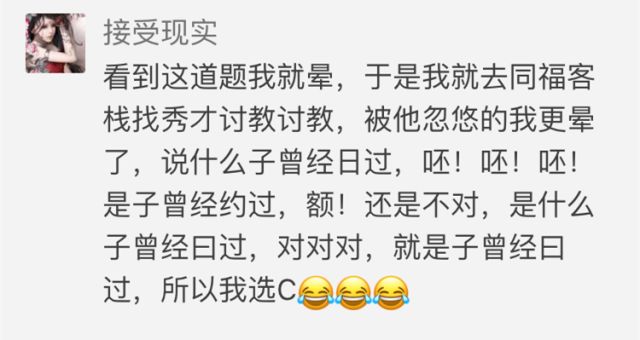 说起绝世武功, 也勾起了不少老玩家的怀念~ 真气消耗400的自然就是—— 子曾经曰过啦~ 虽然答案比较简单, 不过大家的理由还真是…… 十分精彩~~