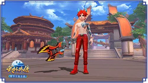 拿着电吉他, 带着龙纹身, 十足的街头范儿。 小白尝试数次带来的红色牛仔裤, 有木有很靓丽~