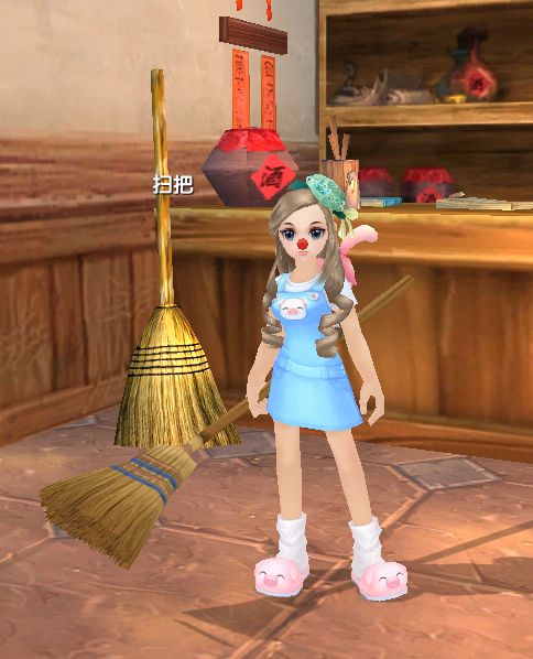之前的扫把老掉毛, 这次给换了把新的, 像不像哈利波特会飞滴扫把。