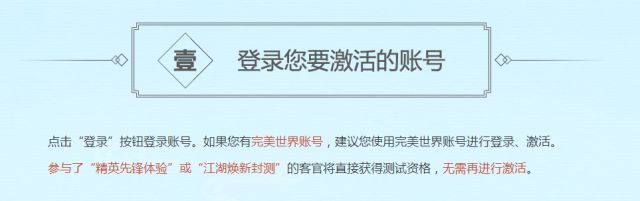 获得测试资格的安卓用户将收到激活码,安卓用户前往官网下载游戏客户端并激活账号后,即可参与测试。 参与了“精英先锋体验”或“江湖焕新封测”的客官将直接获得测试资格,无需激活码。