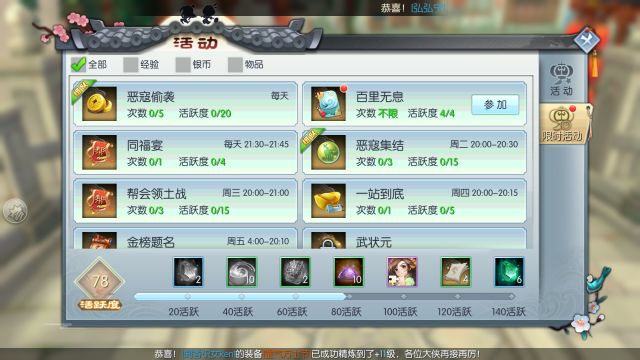 什么样的玩家可以参加这活动? 帅的、美的、有钱的.......? 不不不,没那么多条件, 只要你有帮会是 帮会成员 就阔以!!! 奖励是什么呢?接着看~