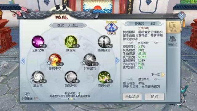 【赎魂咒】 :复活技能,现阶段推荐加1级。