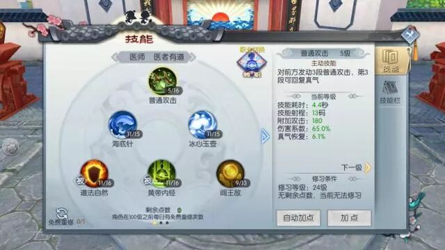 【普通攻击】 :推荐加到 5级 ,神算算得上比较缺真气的职业了,被动普攻三下回复6%的真气很实用。