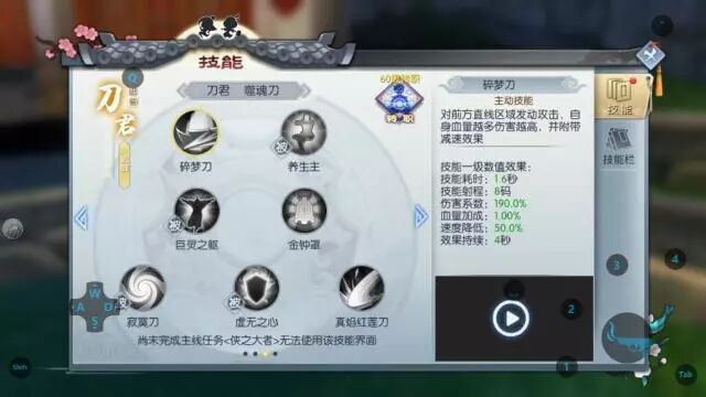 刀君转职有三大技能, 即 碎梦刀,真焰红镰刀,金钟罩 。 以90级阶段的刀君来分析: