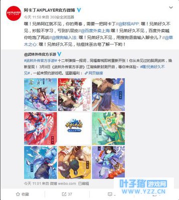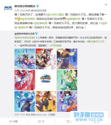 本次联名活动,《武林外传官方手游》得到了众多蓝V的鼎力支持,纷纷转发,并与自己的当家产品结合,联动文案风趣幽默,掀起了一波“兄弟在干嘛”的热潮。兄弟,《武林外传手游》了解一下?