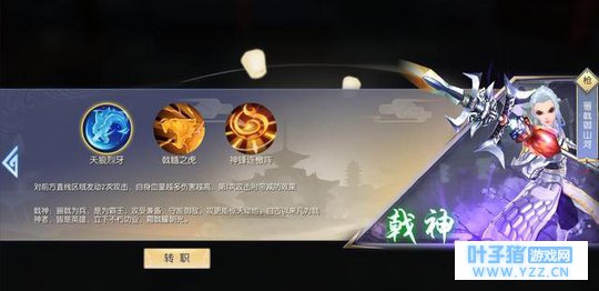 【枪豪转职】 英姿飒爽豪情万丈的枪豪可以转职为刀君或戟神。 身为一方之主,刀君的霸气就如同手中的重刀一般,让人望而生畏。即使遭遇强敌,刀君亦可从容不迫地舞起狂刀,进可攻退可守的他们似乎诠释着“他强任他强,清风拂山岗”的真正含义。