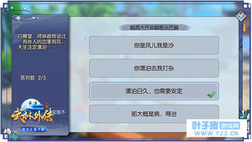 比猪还NB的人? 更可怕的是,在打怪过程中还会收到来自猎物的无情嘲讽,时不时还有采花贼的大胆调戏,简直是身与心的双重摧残,让人不禁大呼“如果虐,请轻虐”! 【套路重重,剧情一步一“陷阱”】 除了大伤脑筋的BT任务,游戏中的剧情走向也让人摸不到头脑。如果你自认为对《武林外传》电视剧剧情了如指掌,如果你深谙每个主角的习惯和心理,那么这些题显然难不倒你。当然,还有一些“官逼民反”的无良选择题,没有一颗突破下限的心还真是无法做出选择啊。