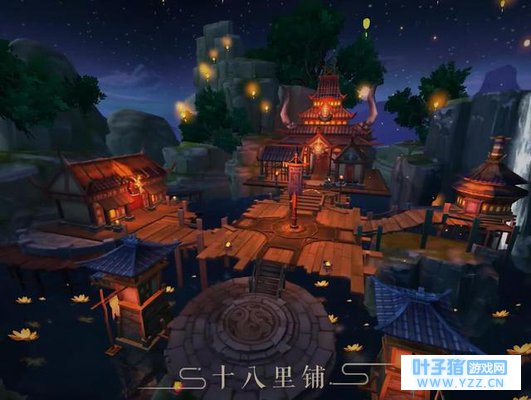 《武林外传》手游——十八里铺 夜晚的城镇郊外。南面城郊,有村落,灯火通明,虽然是城郊,也给人一种热闹的感觉,可以窥见十八里铺的繁华;过了河则是臭名昭著的土匪老巢黑风寨,夜晚的黑风寨更令人感到恐惧,有一种阴森、肃杀之感。