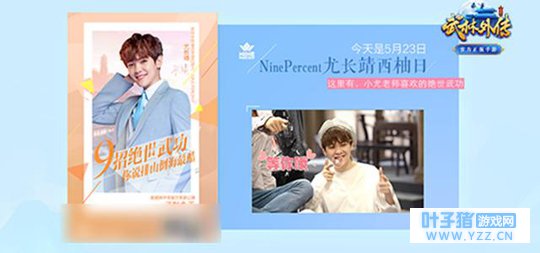 从今天开始,也就是5月23日至5月31日,每天都会是NINE PERCENT中一位成员的主题日,都会放出一个人的独家海报和花絮,快来为你的爱豆打CALL,今天是5月23日,《武林外传手游》的尤长靖西柚日。快来解锁他对你说的语音和独家视频。