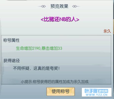 这个不多解释,字面意思(~ ̄▽ ̄)~ 诸如此类的还有许多,尽可能的获得更多称号,在不一样的心情下用不一样的称号,我觉得还是蛮不错的,不过这200多个真是让人头大! 不过这些主创们想的时候,想必也是边坏笑边想到这招吧...于是,游戏中就会常常看到一群飞来飞去的玩家,初入江湖的小白们到时候可能不理解他们不好好升级打怪转悠啥,不务正业!其实可能他们只是为了试出一个喜欢的称号而已... 看完这些奇葩称号后,有没有自己中意的一款呢?欢迎评论区留言~ 本文来源:今日头条,作者:宅鸡送,转载请注明来源。 |