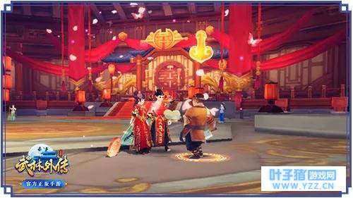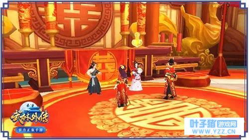 盛大的婚礼即将开场 【江湖同游,有恩爱就要秀】 在拜堂仪式结束后,二位新人可以在秀才处拍照留念,并获得专属结婚证书,为你们的爱打上烙印!而后可以到李大嘴、小郭处购买烟花和喜糖,让诸位来宾都沾一沾你们的喜气儿。待婚礼完成,夫妻双方还可以开启婚车游行模式,宝马香车,良人在侧,向全城百姓证明你们的爱情,直戳老夫的少女心!当然,参加婚礼的客官也可以领到新人福利,收获有情人终成眷属的喜悦,感受新婚夫妇的甜蜜。
