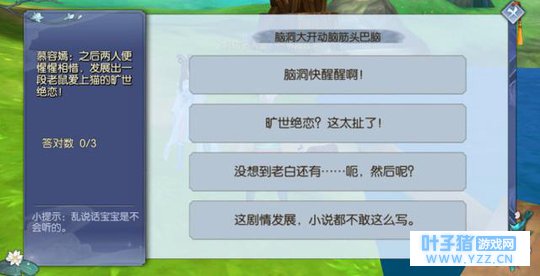 这是砖叔在游戏中对上萌萌的NPC慕容嫣的一套任务,欺负了一下之后,慕容嫣给玩家出了一套问卷,如果是你你能做对么?