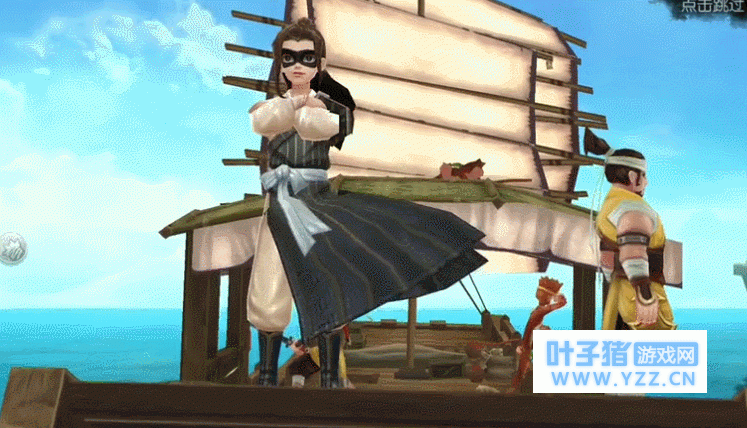 镜头一转,一艘船缓缓开了过来,再看船上的人果然就是传说中盗圣了,初次见到盗圣,便被他俊朗的面容飘逸的裙摆酷炫的眼罩所吸引,盗圣果然名不虚传,浑身上下都有一股侠客风范。