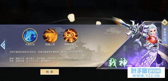当玩家等级达到60级便会经历转职,俗话说"男怕入错行,女怕嫁错郎"转职可谓是十分重要的事。如果玩家的职业是枪豪,那么转职方向将是"刀君"或"戟神"。这两个转职的共同点是继承了原职业的肉盾属性,所带有的技能和自身的生命值将相辅相成;不同点在于"刀君"是更偏向于团队的纯肉盾,例如它的金钟罩技能还会为队友减少伤害,而"戟神"则是带有一定输出的战士型肉盾。