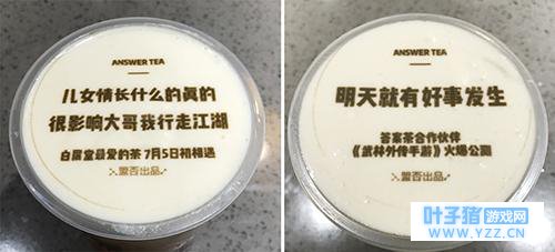 白展堂最爱—衣兮青梅乌龙 在奶盖上还可以见到这些“清新脱俗”的小段子,以及对生活的美好小期许,让会说话的答案茶给你讲《武林外传》中的小故事。