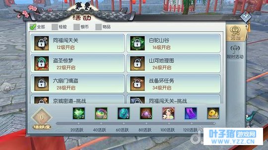 2.付费玩家能尝到不少甜头! 充值活动包括单日累计充值、周末累计充值。对于付费玩家来说,充值活动带来了不错的福利,你能获得保底符、金币、影之尘、榴莲、高级侠影等道具,它们都能在角色养成中发挥巨大作用。付费玩家务必随时注意充值活动动态,这样便能在第一时间领取福利,更快的增强实力。 3.参与多种活动,保持活跃! 除了福袋、充值活动,活跃度也是十分重要的一环。为进一步提升玩家热情,官方推出了夏日武林集字活动、活跃度宝箱活动、限时在线领奖活动。在夏日武林集字活动中,你能通过攻略日常副本获得集字道具,然后按照指定配方合成宝箱,宝箱中包含锻铸玉、强运符、金币、侠影等道具,每种道具实用性都很高;活跃度宝箱活动需要你达到指定活跃度才能参与,活跃度达到指定数量后,就可获得吕轻侯礼包,礼包中含有吕轻侯碎片,与郭巨侠类似,吕轻侯也能为角色带来收益,不可错过;在限时在线领奖活动中,你只需在活动期间通过在线领奖系统领取奖励即可,举手之劳,收益丰厚。可以看出,官方鼓励玩家多多参与副本,活动环环相扣,你能在完成副本的同时参与各类活动,获取比平时更豪华的奖励,活动流程趣味十足,大大增强了沉浸感。