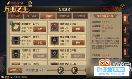 万王之王3d魔灵救赎活动怎样玩?万王之王3d最近也新出了一个新的活动魔灵救赎,那么这个活动该怎么玩呢?通关了又有些什么奖励呢?下面小编就来给大家介绍下万王之王3d魔灵救赎的玩法。 万王之王3d魔灵救赎活动玩法攻略《万王之王3D》手游中有三大阵营,而有许多的副本和活动是围绕着这三个阵营进行的。今天要为大家介绍的活动就是发生在英雄岛上、以阵营为基础的活动——魔灵救赎。作为一个阵营活动,它集合了PVE和PVP双重玩法,可以说是一个非常令人热血沸腾的活动。那么,想要在这里成功厮杀,成为强者,该如何做呢?下面就为大家带来魔灵救赎活动的基本介绍及玩法解析。