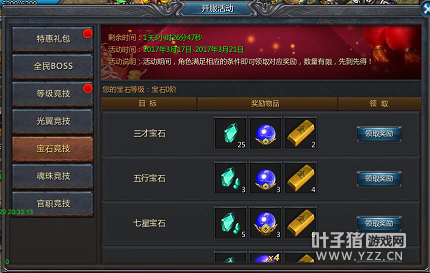 五、宝石竞技,开服第3天开启,升级到相应宝石阶数即可领取相应返利宝石结晶,宝石升级最大收益!!