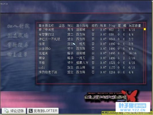 当然,说到现在,可能很多人都不知道,流星蝴蝶剑可以网上对战平台联机!05年左右的吧,那个年代2m的网速是不允许跨电信网通去玩游戏的。所以,网通电信各有平台。电信------->互动游戏中心 网通------->中国宽带对战平台 和网通电信皆有服务器的浩方对战平台