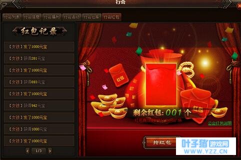 每年都有通过抢红包而发家致富的人,在49you《原始传奇》里更是如此!行会红包内的元宝金额随机发放,先到先得,能抢到多少红包就看你的人品了!红 包有效期为1天,若24小时内红包没有抢完,剩余的元宝数会通过邮件如数返回给发红包的玩家。合服后,若之前仍有未抢完的红包,系統会自动将剩余元宝通过 邮件返还给发红包的玩家。万元红包就在49you《原始传奇》等着你,赶紧来抢吧! 《原始传奇》是一款由49you运营的东方魔幻风 格的多人在线角色扮演游戏,以升级、打装备、结识兄弟为游戏主要玩法,并融合一些创新的特色玩法;背景音乐华丽清晰,怪物模型生动逼真,营造出亦真亦幻的 场景效果;装备丰富多样,技能特效绚丽,操作手感爽快,为一款“传奇”味道很浓的精品网游。《原始传奇》,传承经典,延续激情,是页游角色扮演中的里程碑 之作! 《原始传奇》官网:http://yscq.49you.com/ 更多火爆网页游戏尽在49you:http://www.49you.com/ [编辑:叶子猪小秘书]